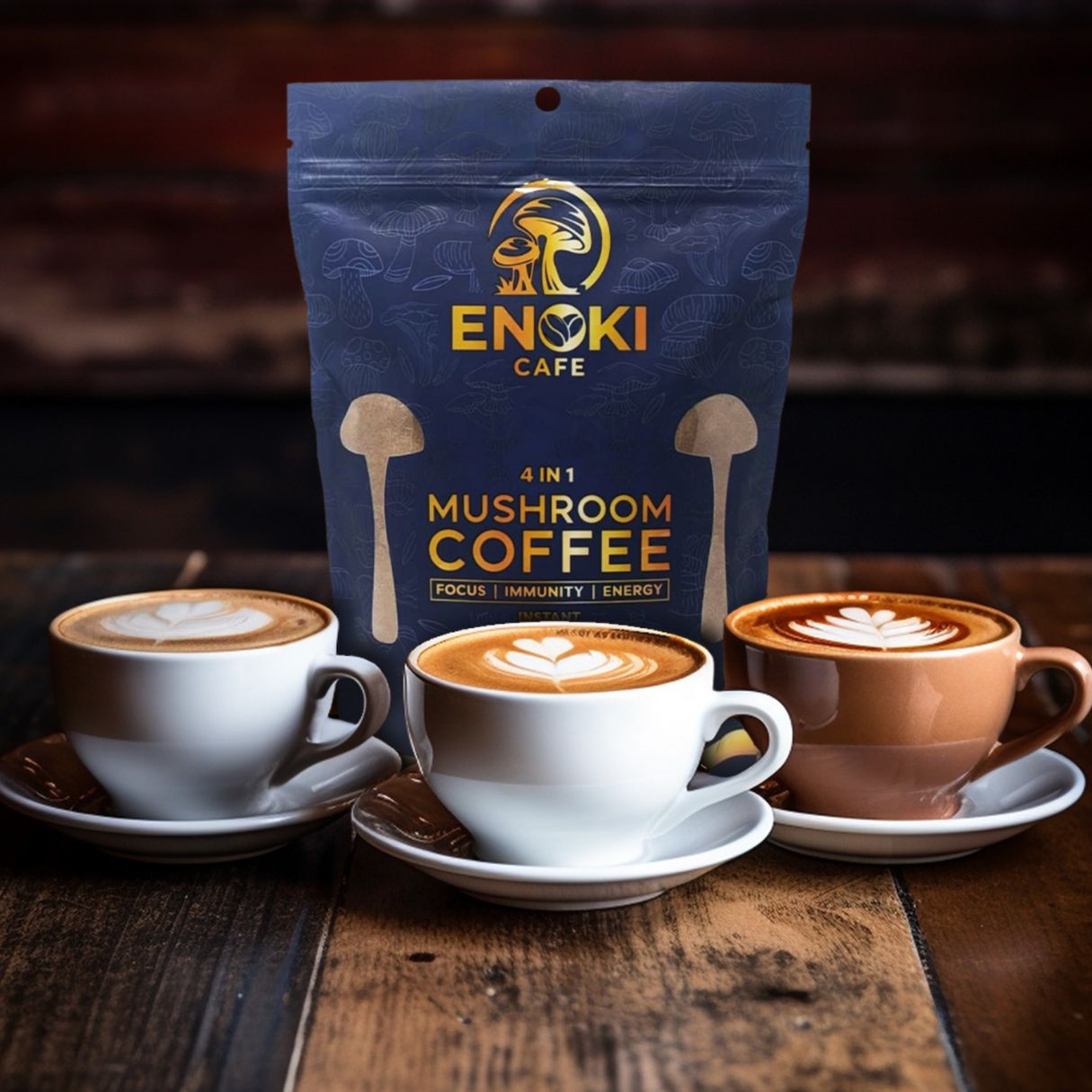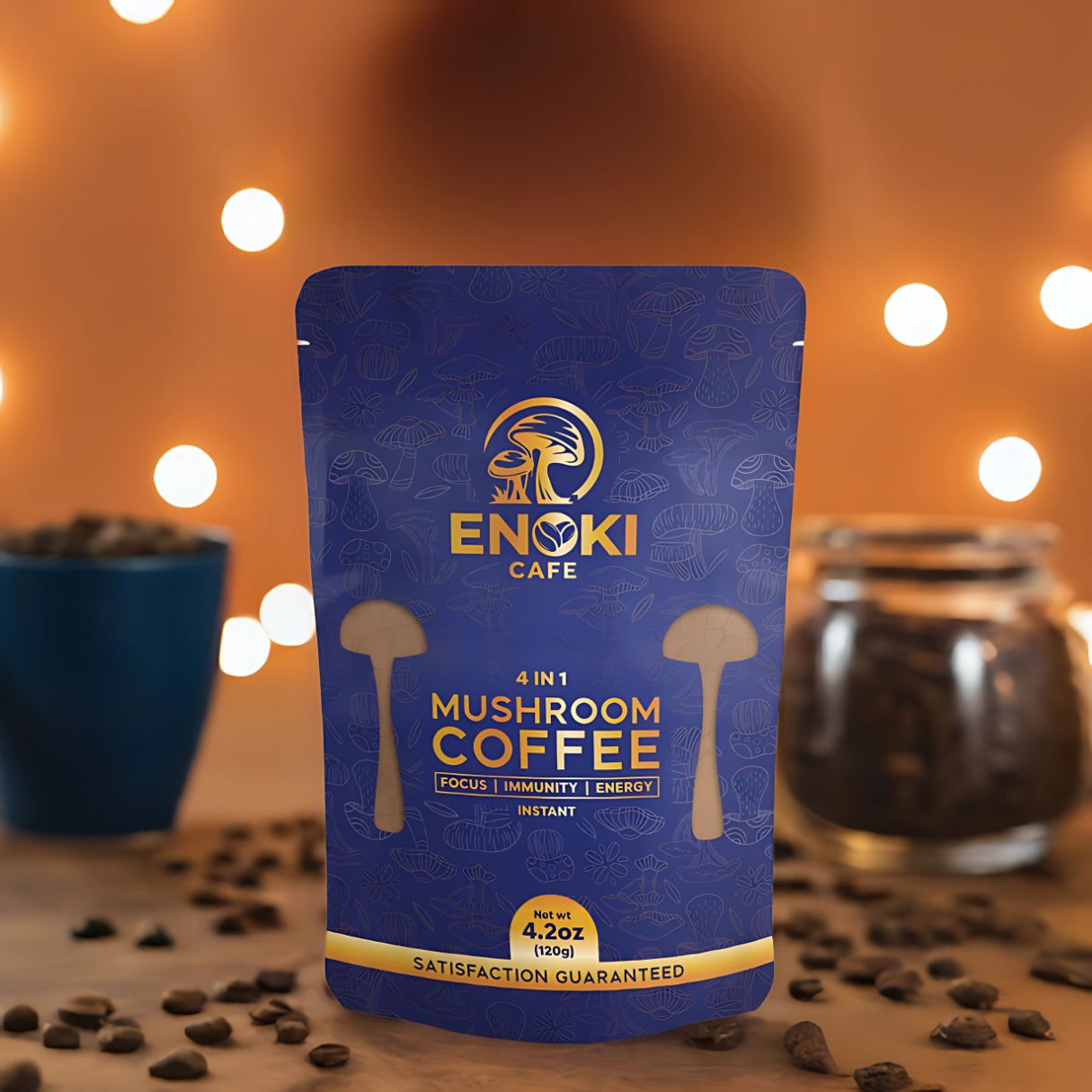 Soppkaffe fra Enoki Cafe er et smakfullt og naturlig alternativ til kaffe, perfekt for deg som ønsker en drikk med lite koffein. Drikken gir deg et naturlig og spennende alternativ til tradisjonell kaffe. Nyt en deilig kopp med ingredienser som støtter en balansert og helhetlig livsstil.