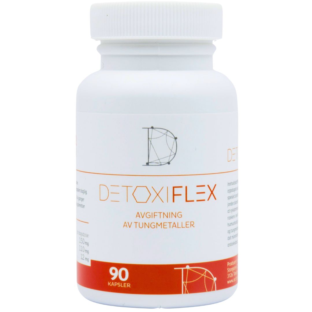 Detoxiflex – skånsom avgiftning av tungmetaller. Bidrar til å fjerne kvikksølv, aluminium, arsen/arsenikk, bly og andre miljøgifter.