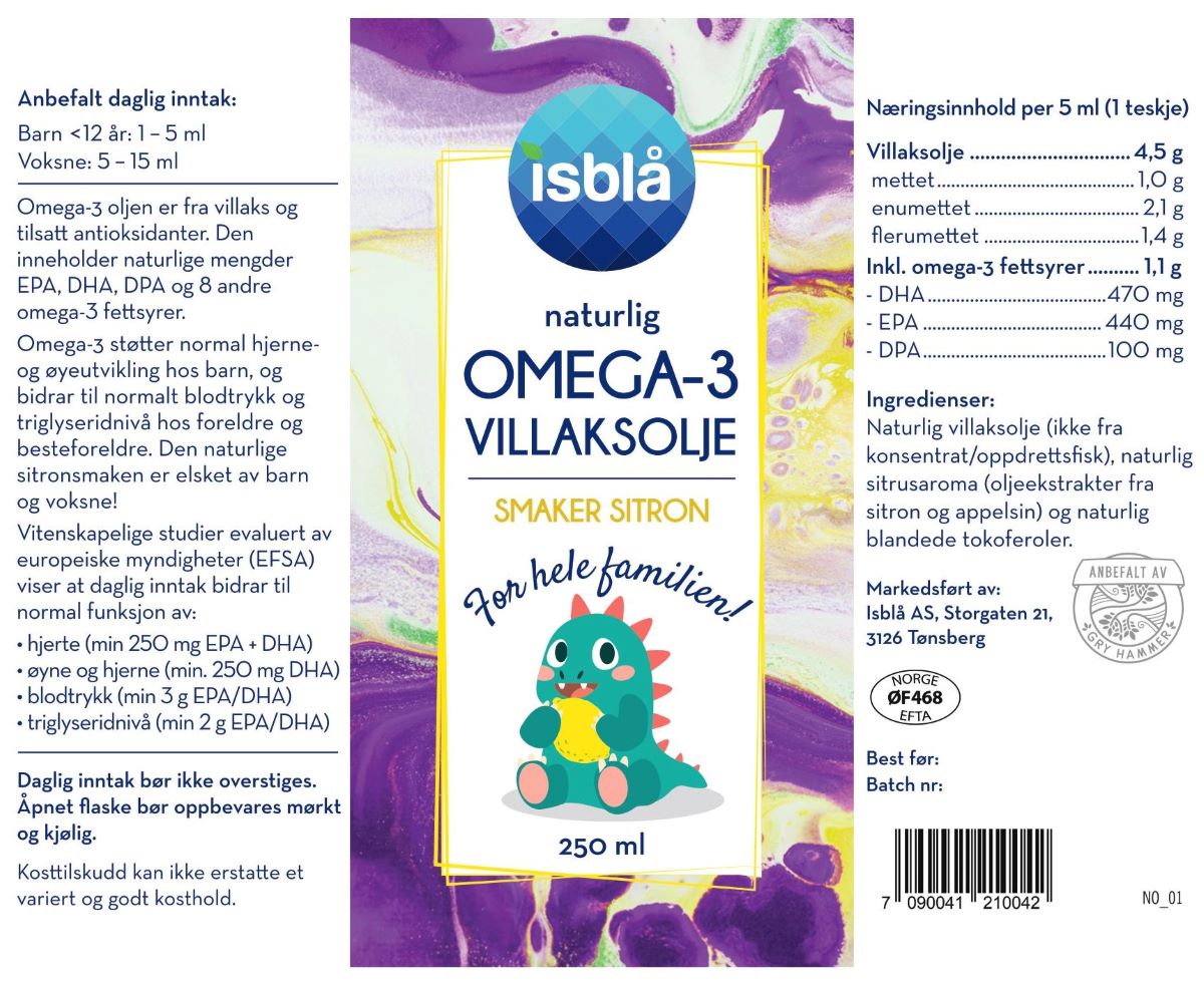ISBLÅ OMEGA-3 VILLAKSOLJE MED SITRONSMAK